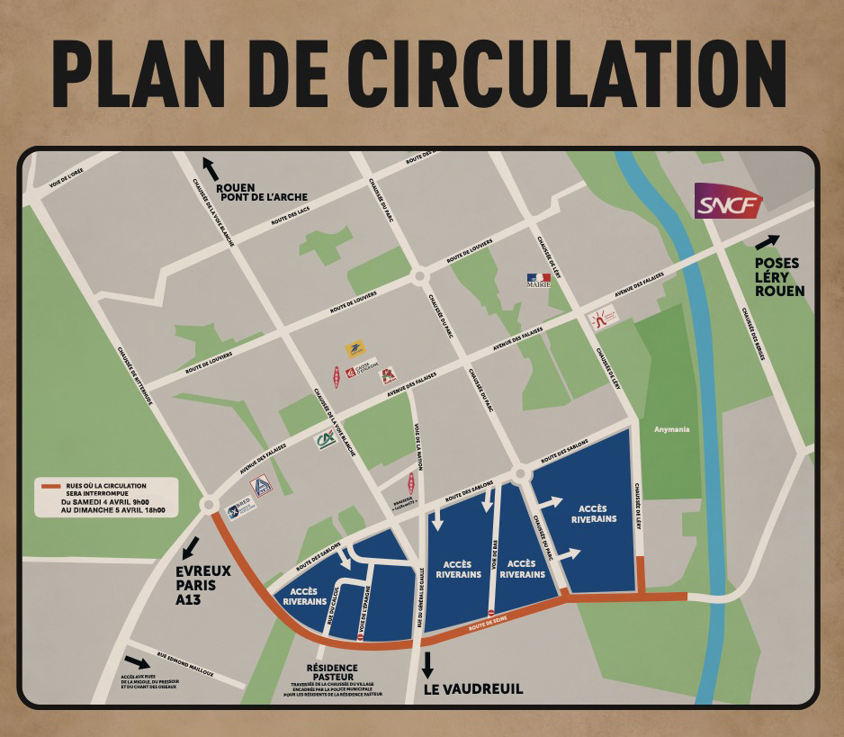 Pour garantir la sécurité et le bon déroulement de l’événement, un plan de circulation spécifique est mis en place par la Ville de Val-de-Reuil.